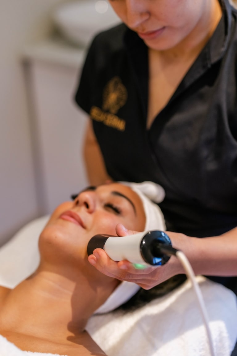 Deze geavanceerde radiofrequentie technologie werkt met gecontroleerde warmte-energie die diep in de huid doordringt. Het resultaat? Een krachtige stimulatie van collageen en direct zichtbare huidverstrakking.